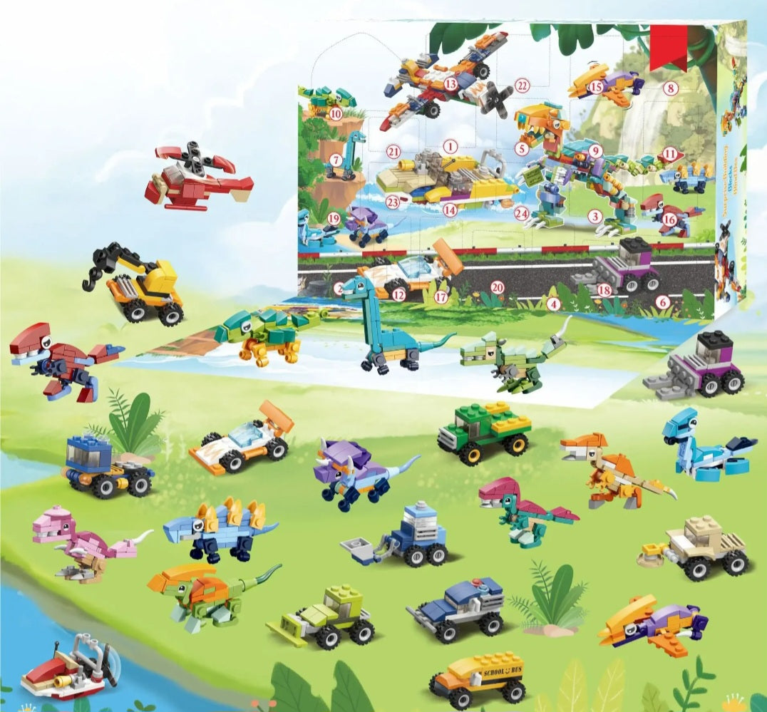 🦖🚗 Caja Sorpresa de Bloques de Construcción – Dinosaurios y Vehículos 🚗