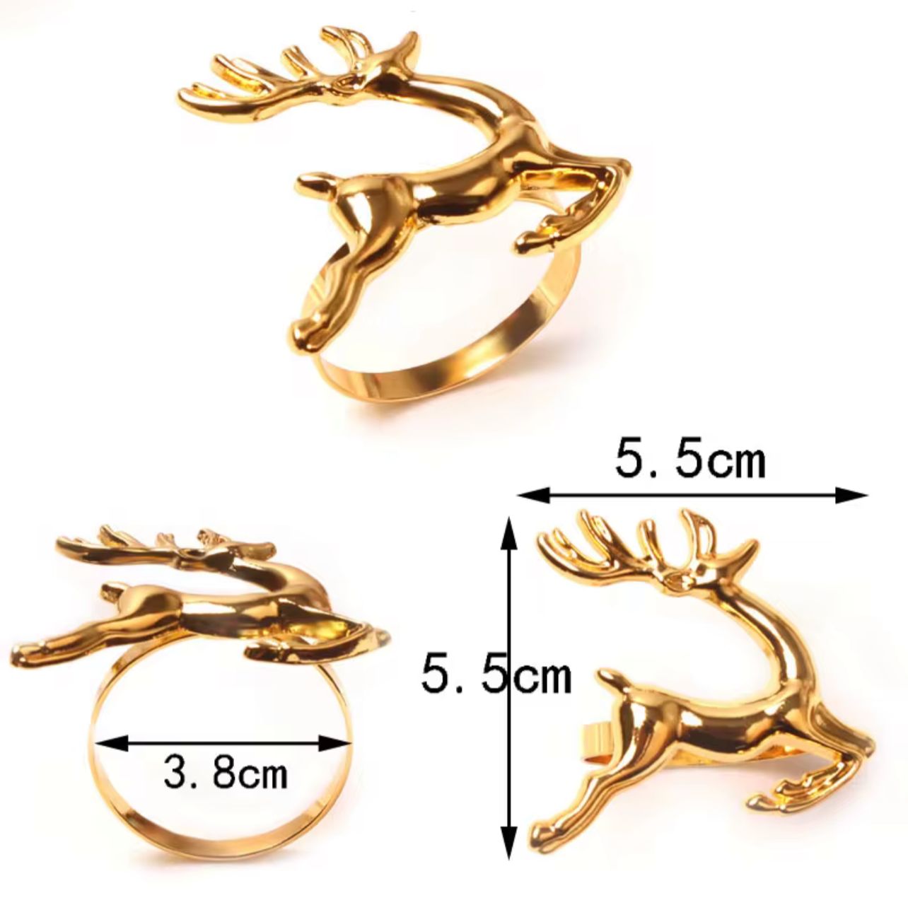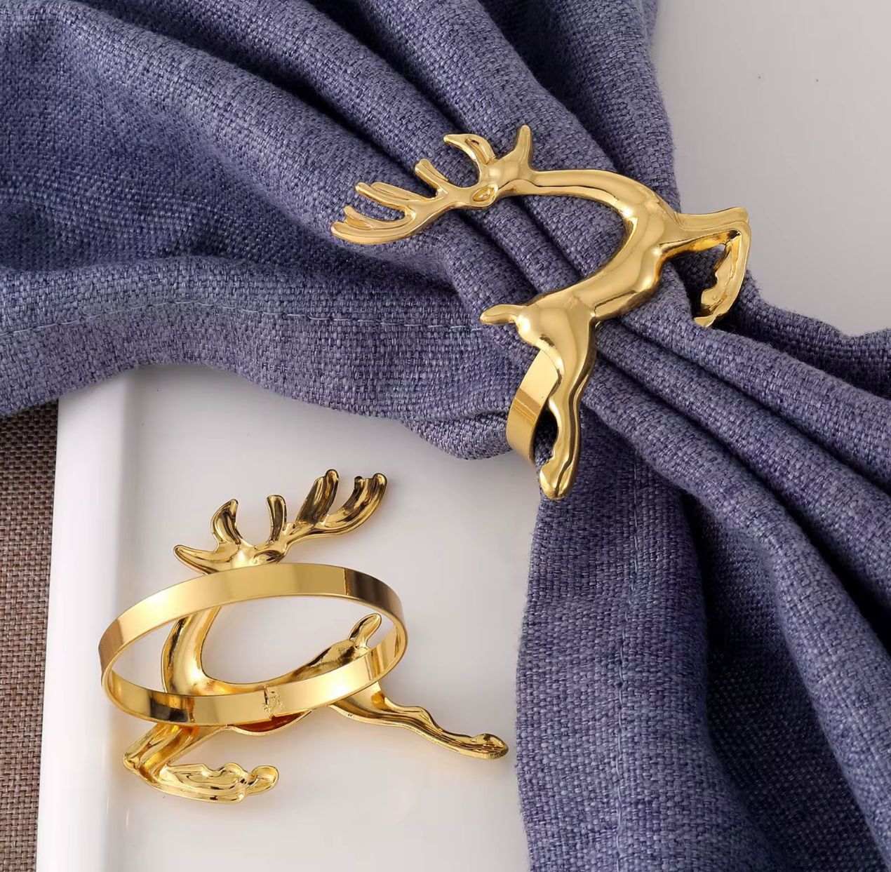 🦌✨ Aros para Servilleta de Reno – Dorado y Plateado