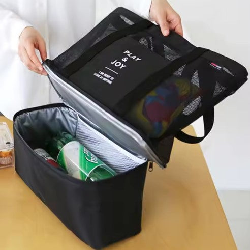 Bolso de malla impermeable de tela de poliester, con compartimiento térmico.