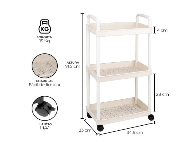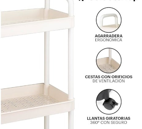 Nuestro carrito organizador de 3 niveles con ruedas es perfecto para mantener tu hogar en orden y aprovechar cada espacio.