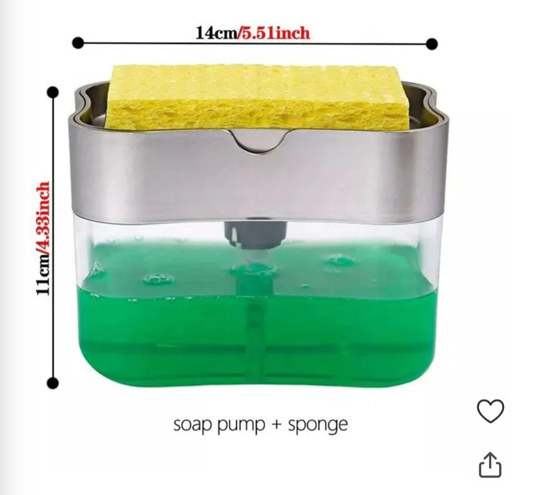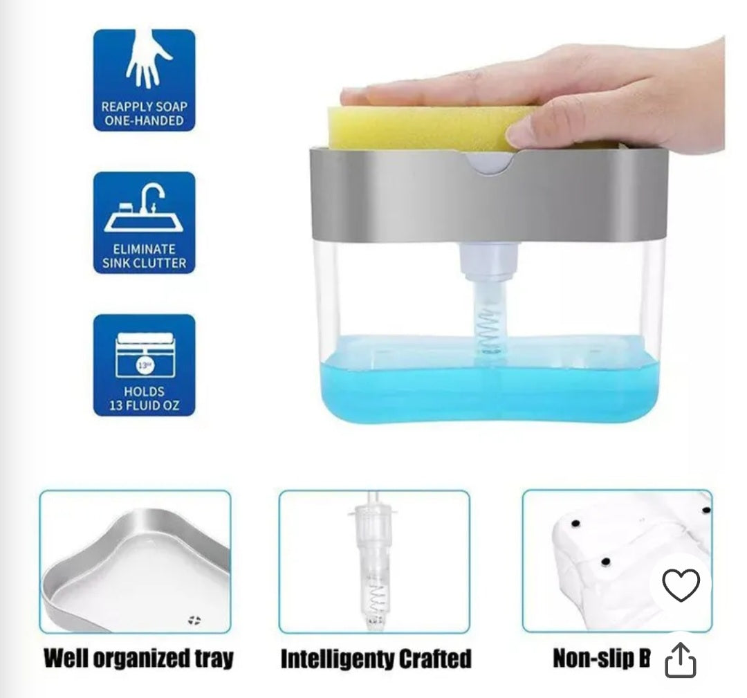 Este es un dispensador de jabón 2 en 1 con soporte para esponja.