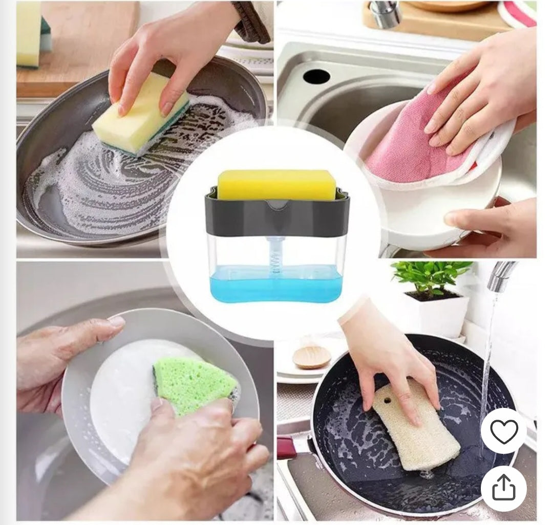Función: Permite almacenar jabón líquido (generalmente para lavavajillas) y una esponja en un solo lugar, facilitando el lavado de platos.