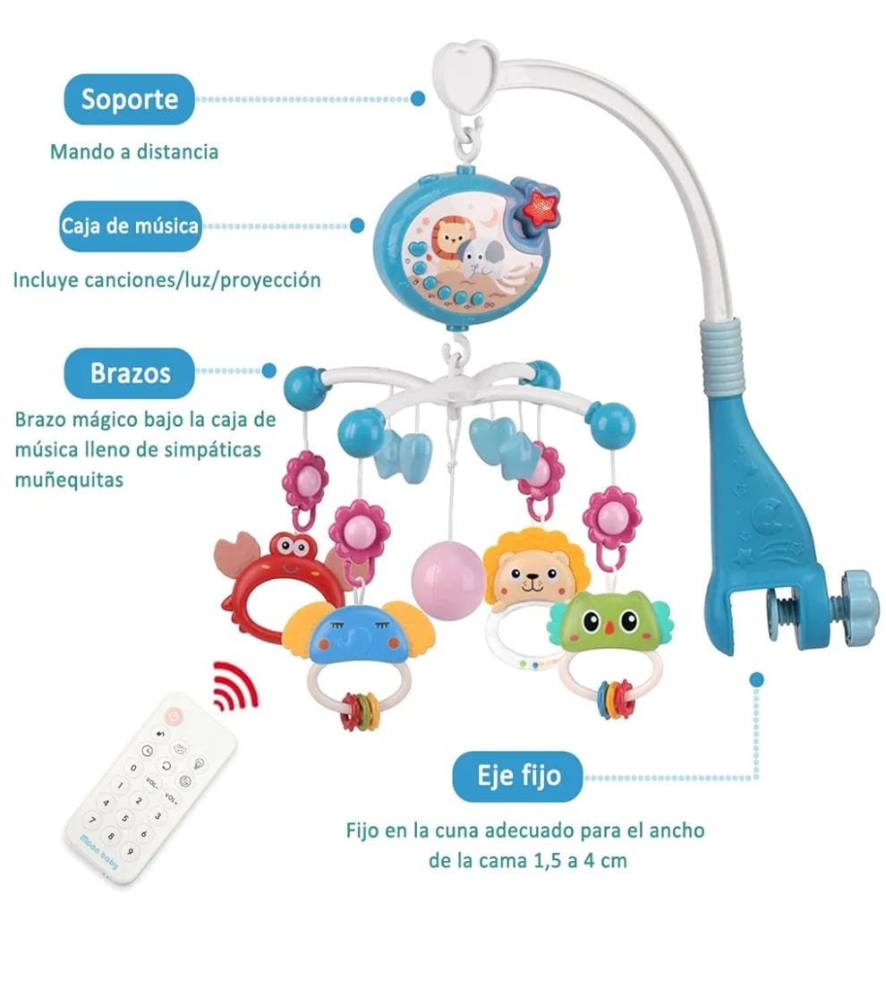 Móvil de cuna con proyector y control remoto