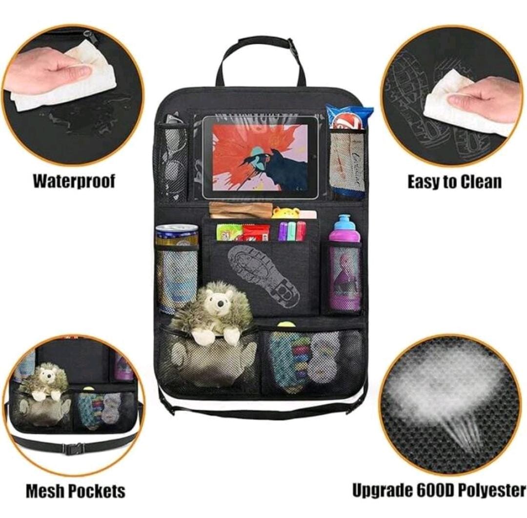 Organizador de asiento de carro, con soporte para tablet de 10 pulgadas y bolsillos de almacenamiento.
