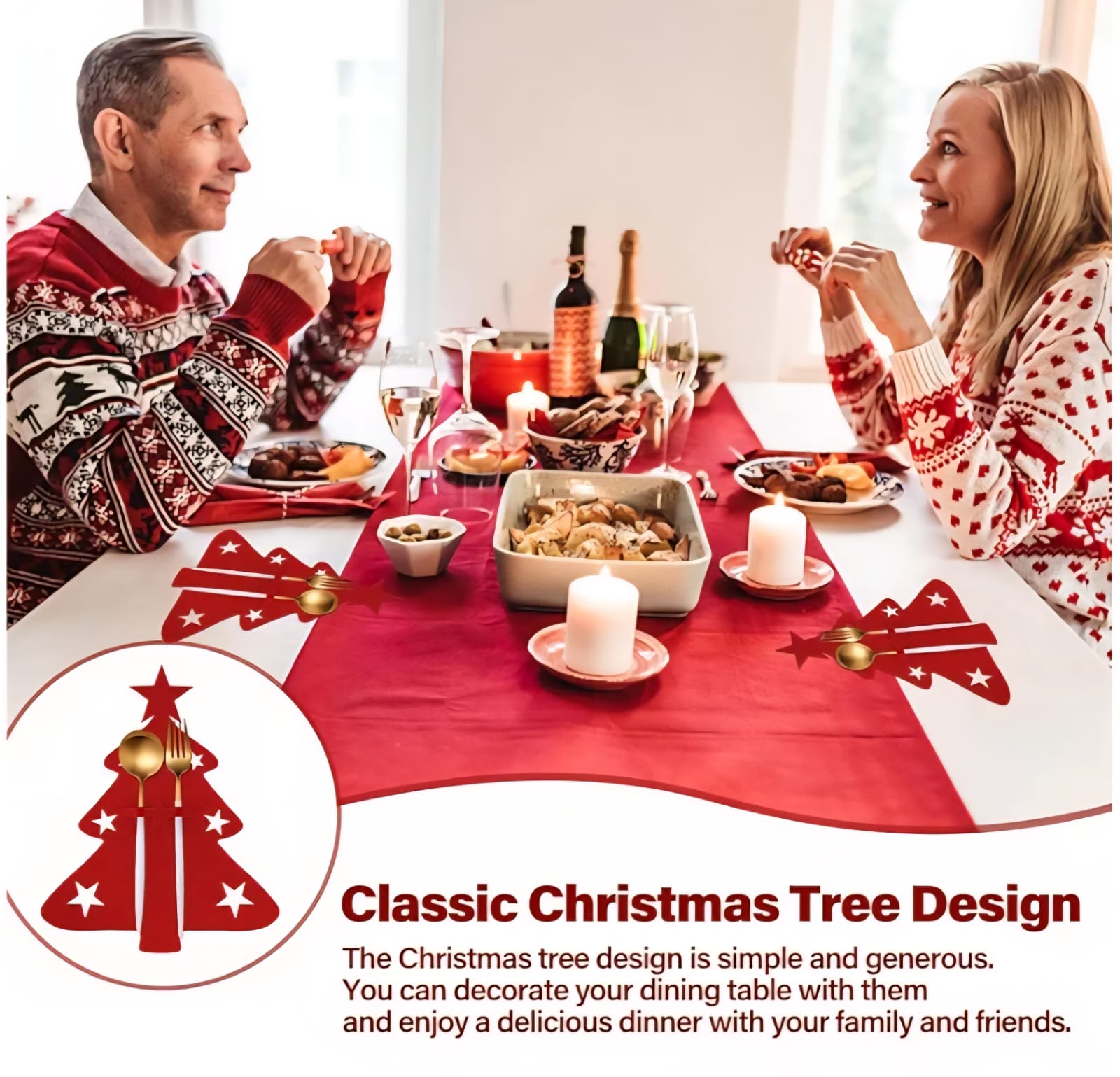 Portacubiertos Navideño en forma de Árbol de Navida (set 12)