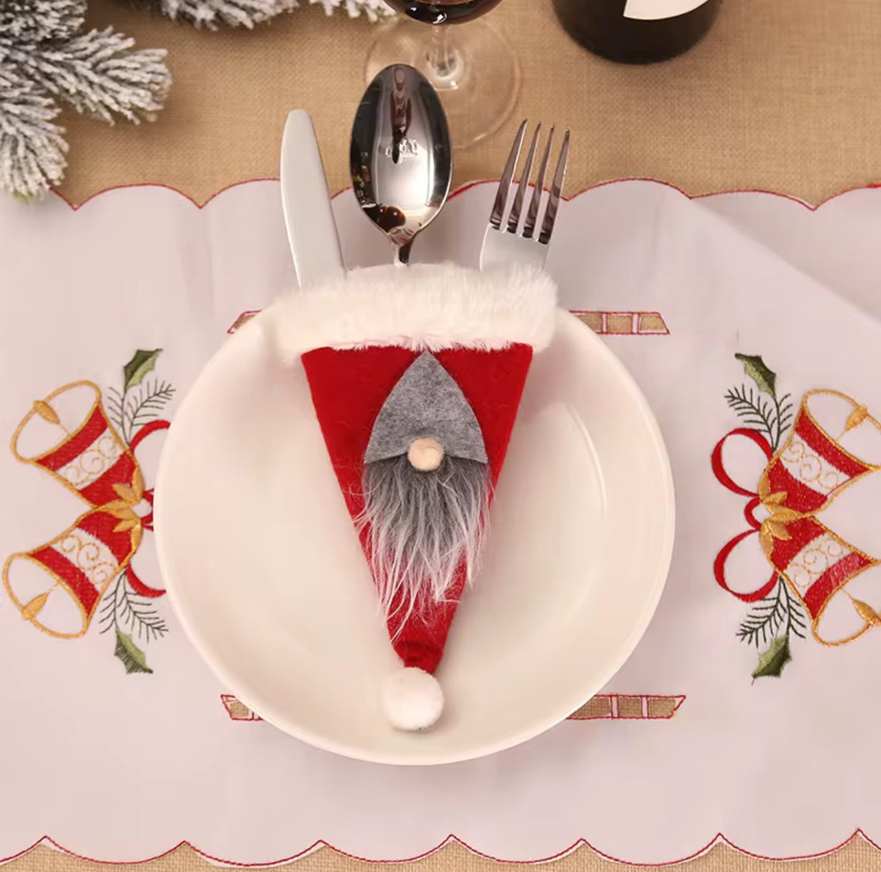 🧝♂️🎄 Set de 4 Gorros Navideños para Cubiertos – Gnomos