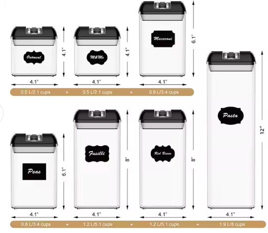 Set de 7 contenedores de alimentos, perfectos para organizar tu cocina, elaborados de material plástico acrílico.