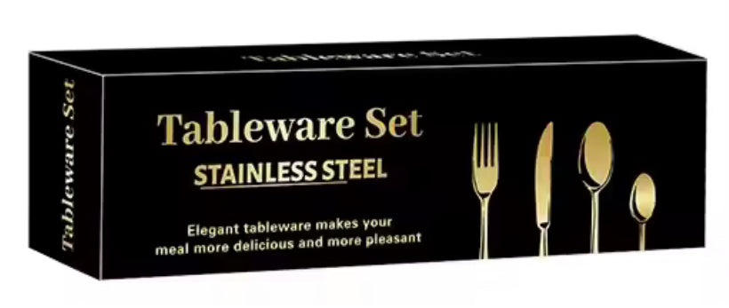 Eleva tu mesa con este elegante set de cubiertos de acero inoxidable con recubrimiento electrolítico de titanio. 🍴💎