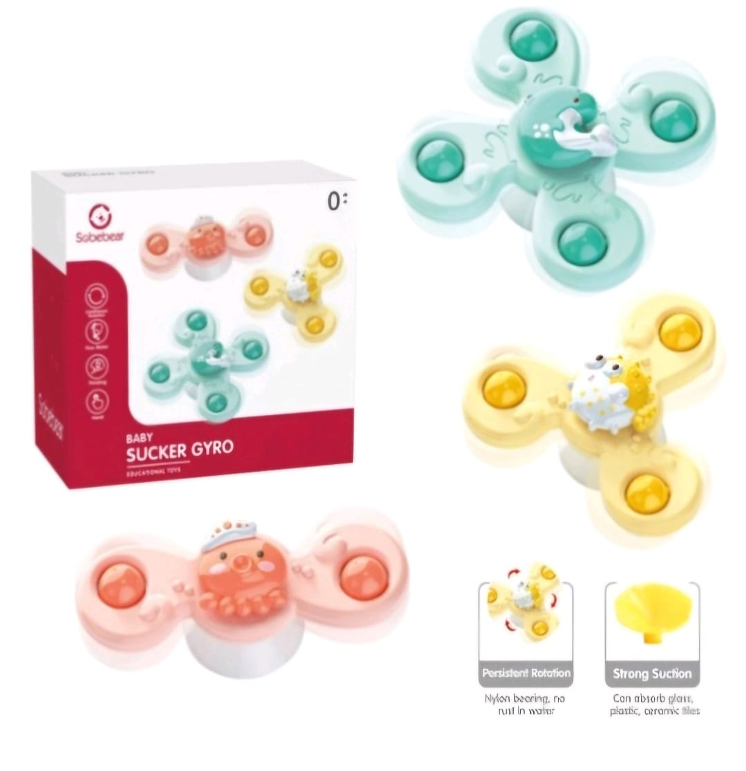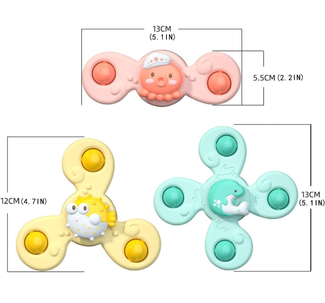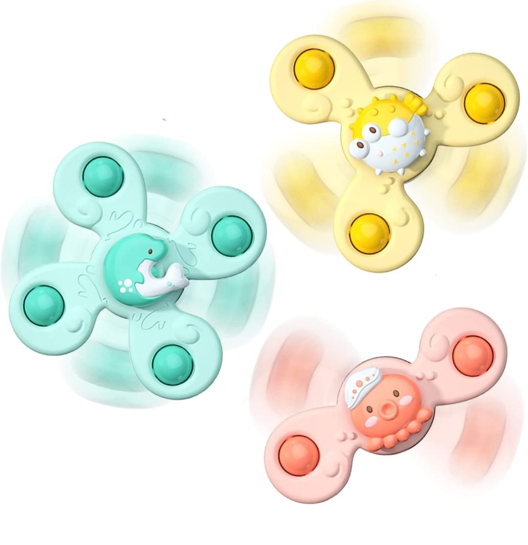 Trío de juguetes giratorios con ventosas