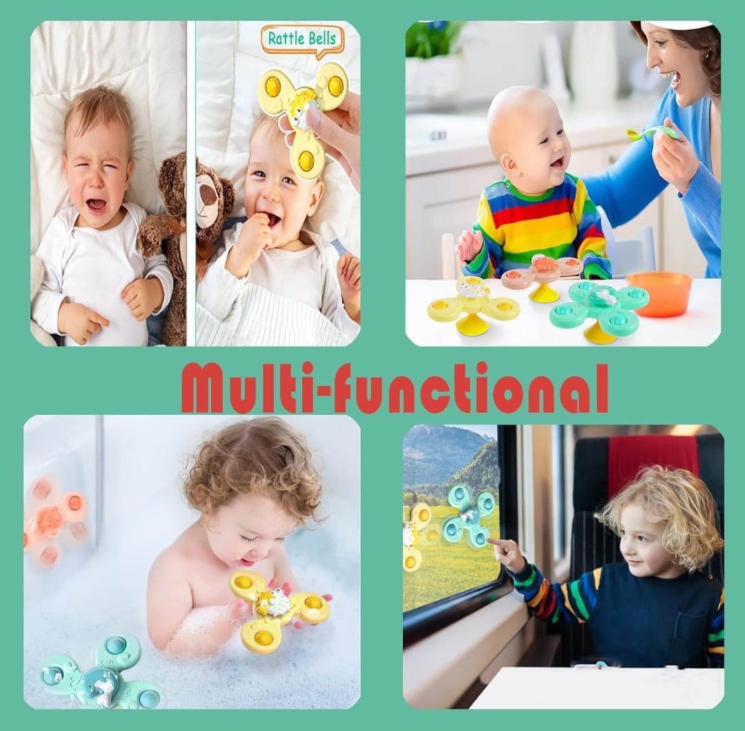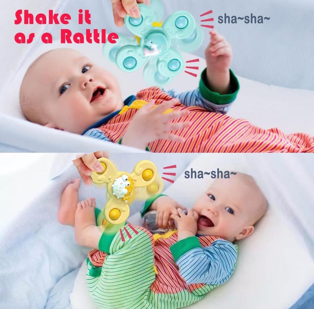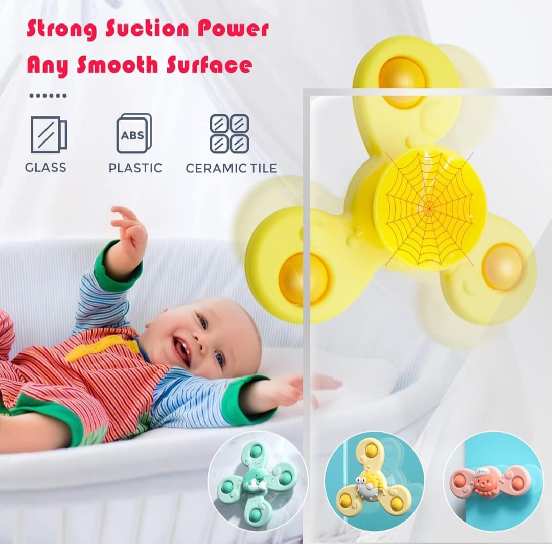 Trío de juguetes giratorios con ventosas
